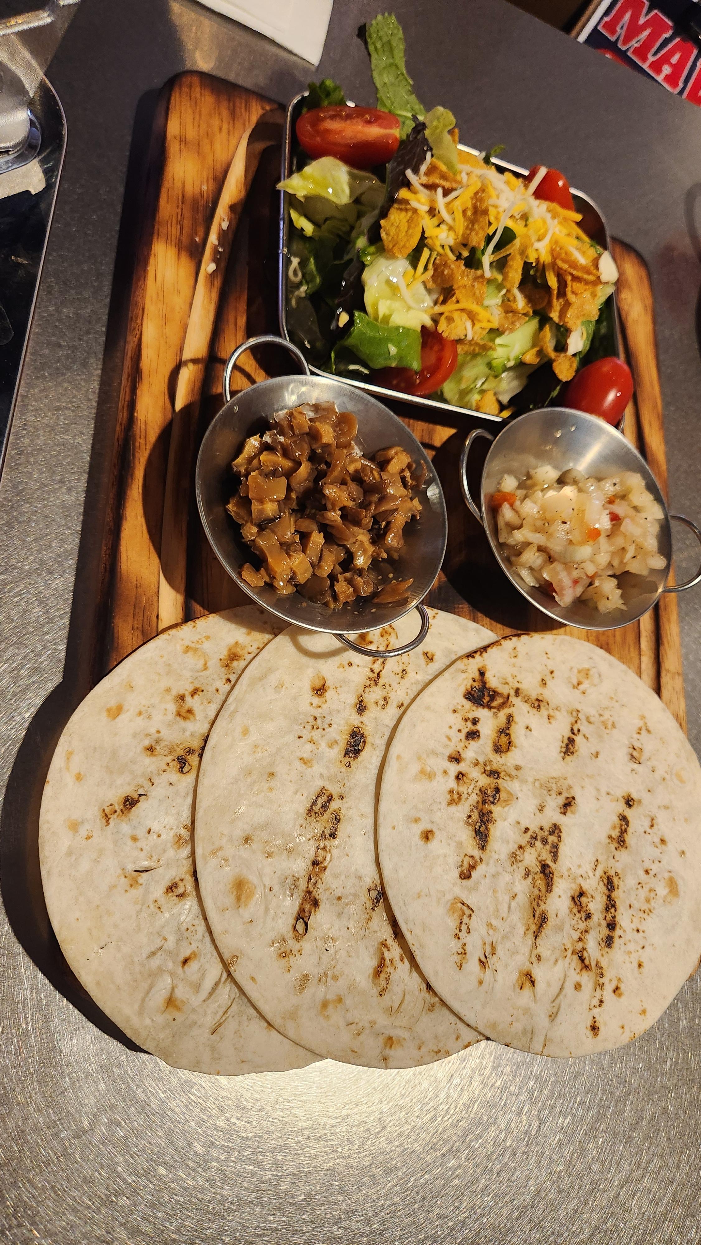 바베큐에는 모닝빵을 많이 주는데, 또띠아에 싸서 먹는 것도 색다른 맛이있습니다.