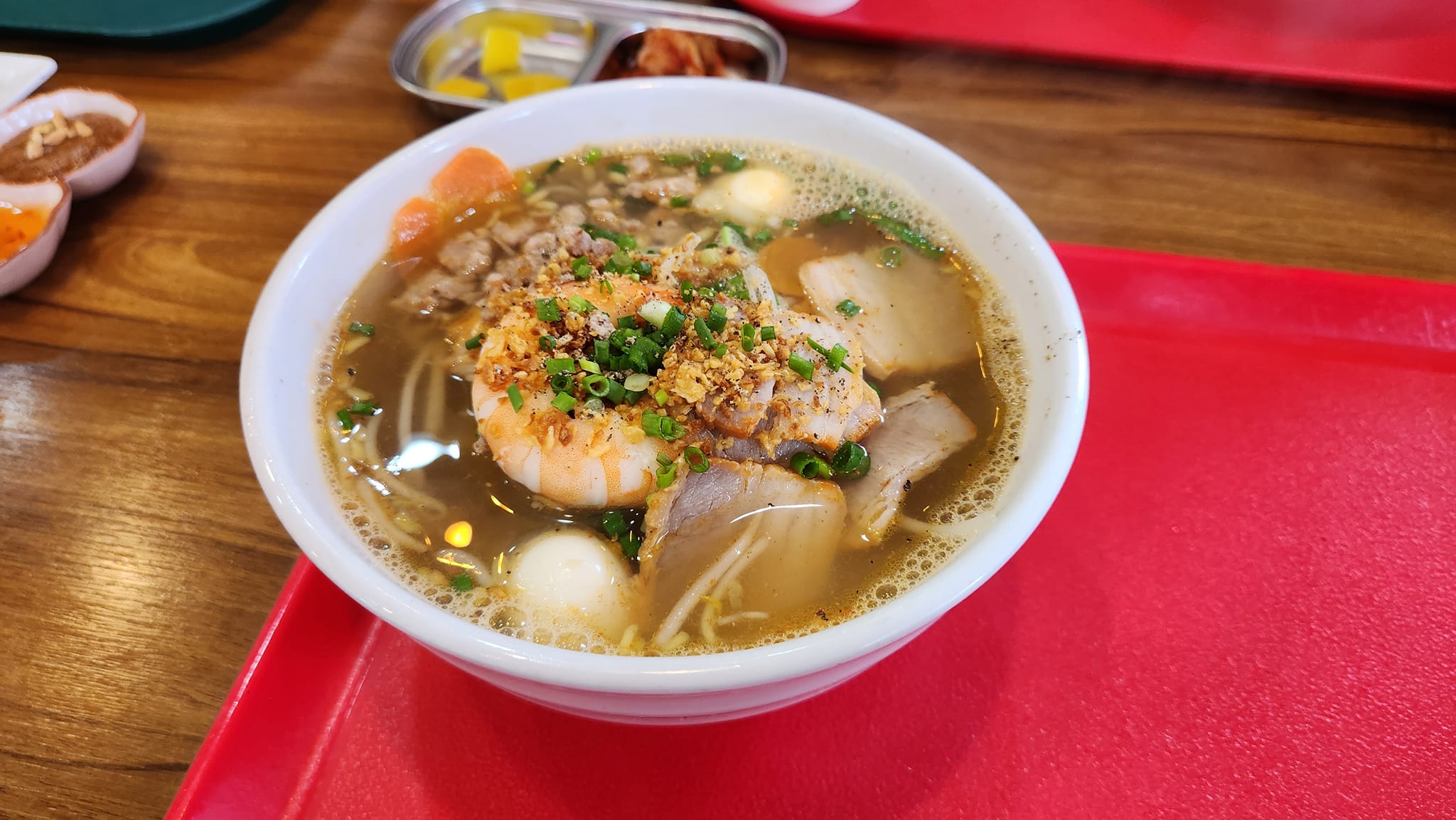 - 새우향이 많이 나는 진한 국물이 특징인 묵직한 국수요리